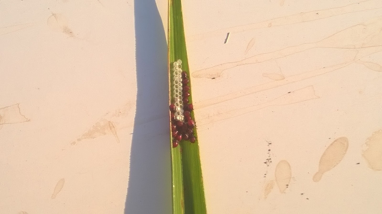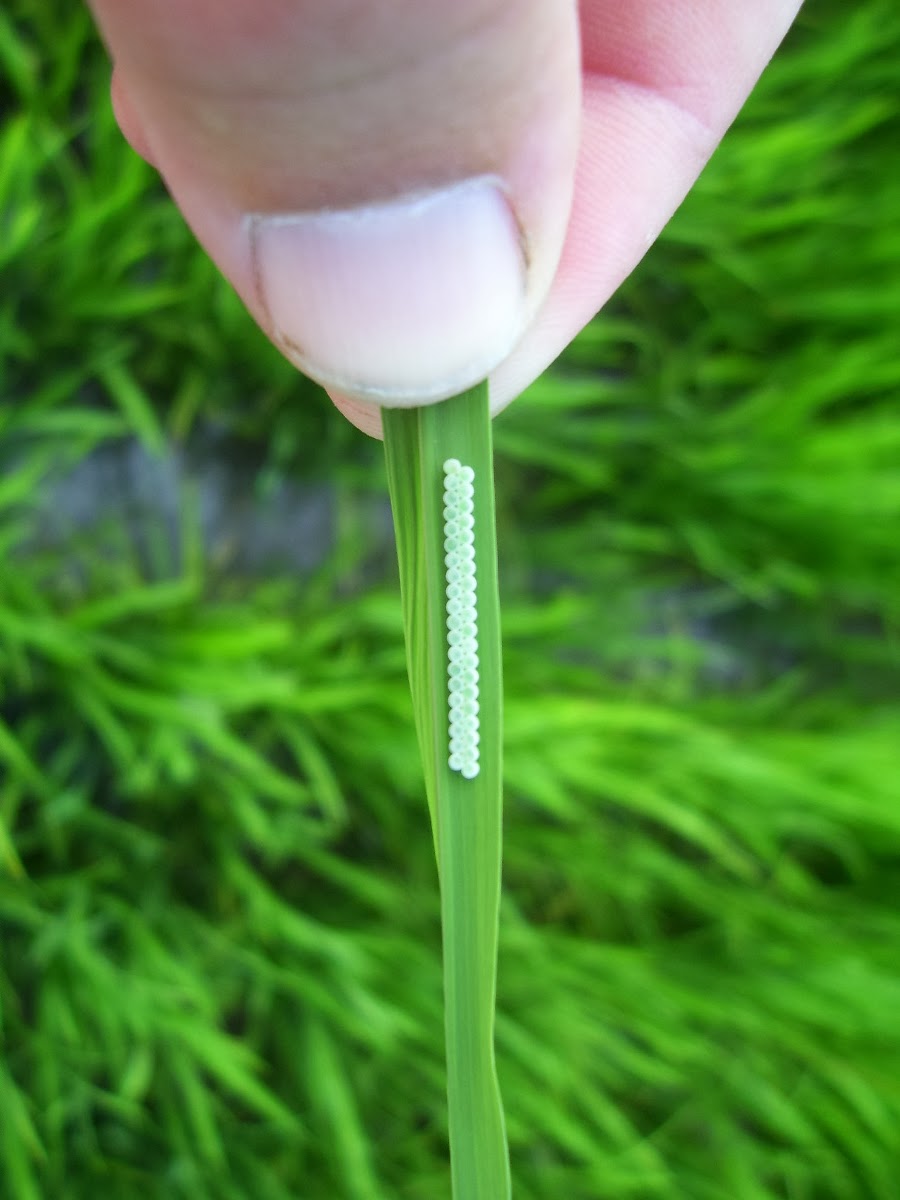 | Chinche del grano (Oebalus spp) Postura de Huevos de Tibraca Ninfas de Oebalus naciendo |